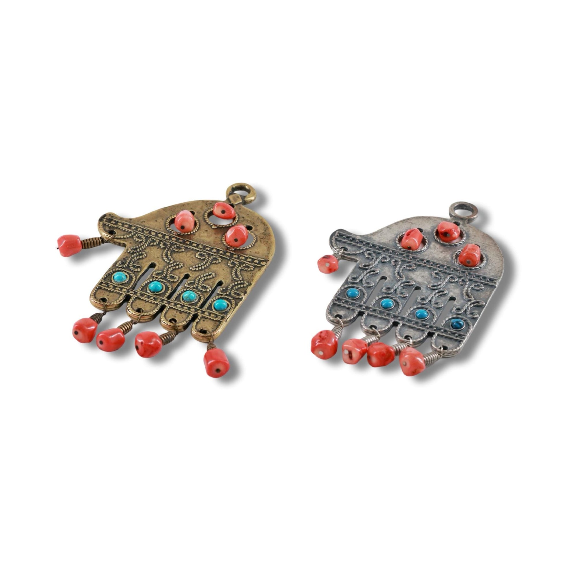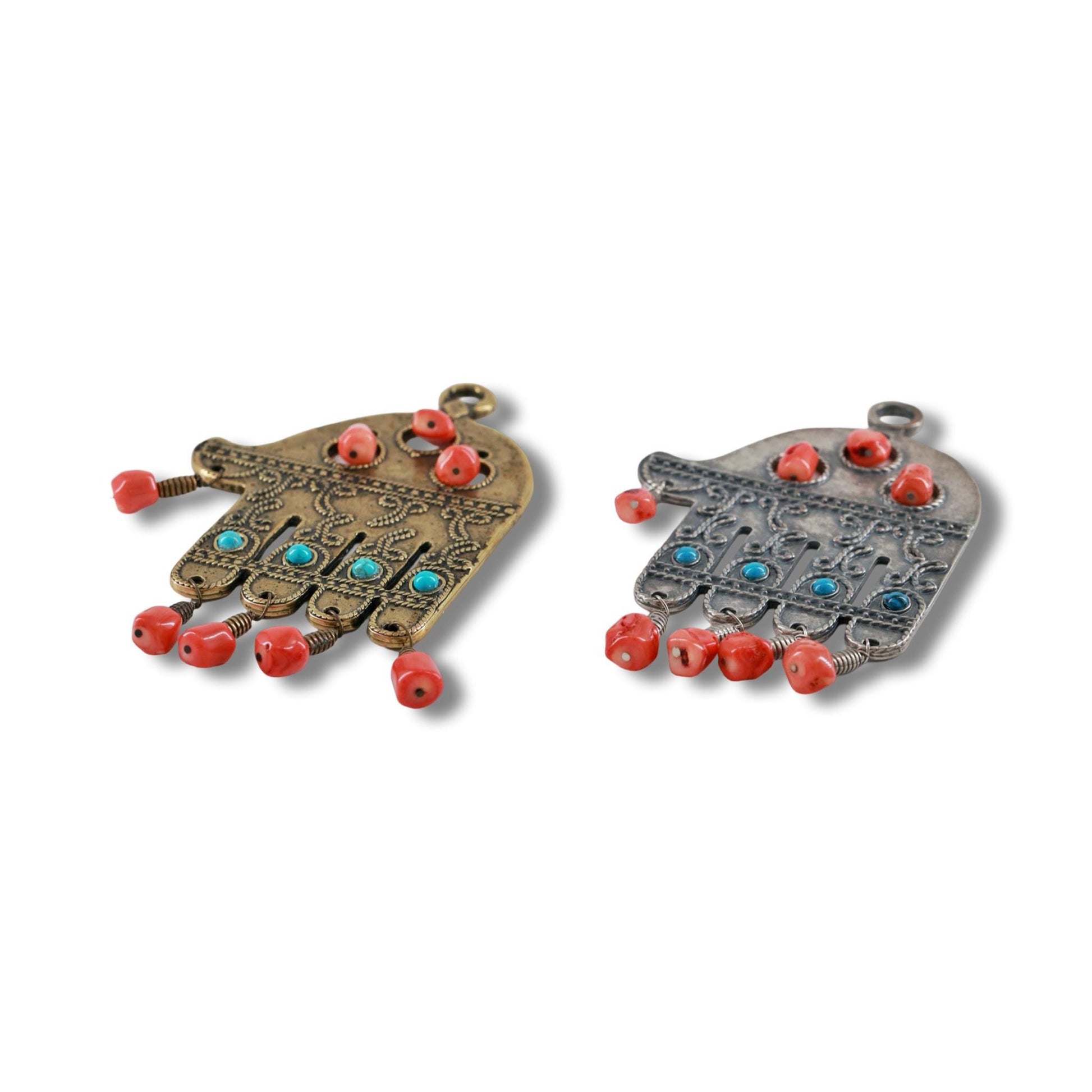 Adorned with vibrant corals and turquoise accents, this piece not only serves as a stunning decorative element but also symbolizes protection and blessings. Its intricate detailing adds a touch of elegance and tradition to any space, making it a perfect gift for loved ones or a beautiful addition to your own decor.