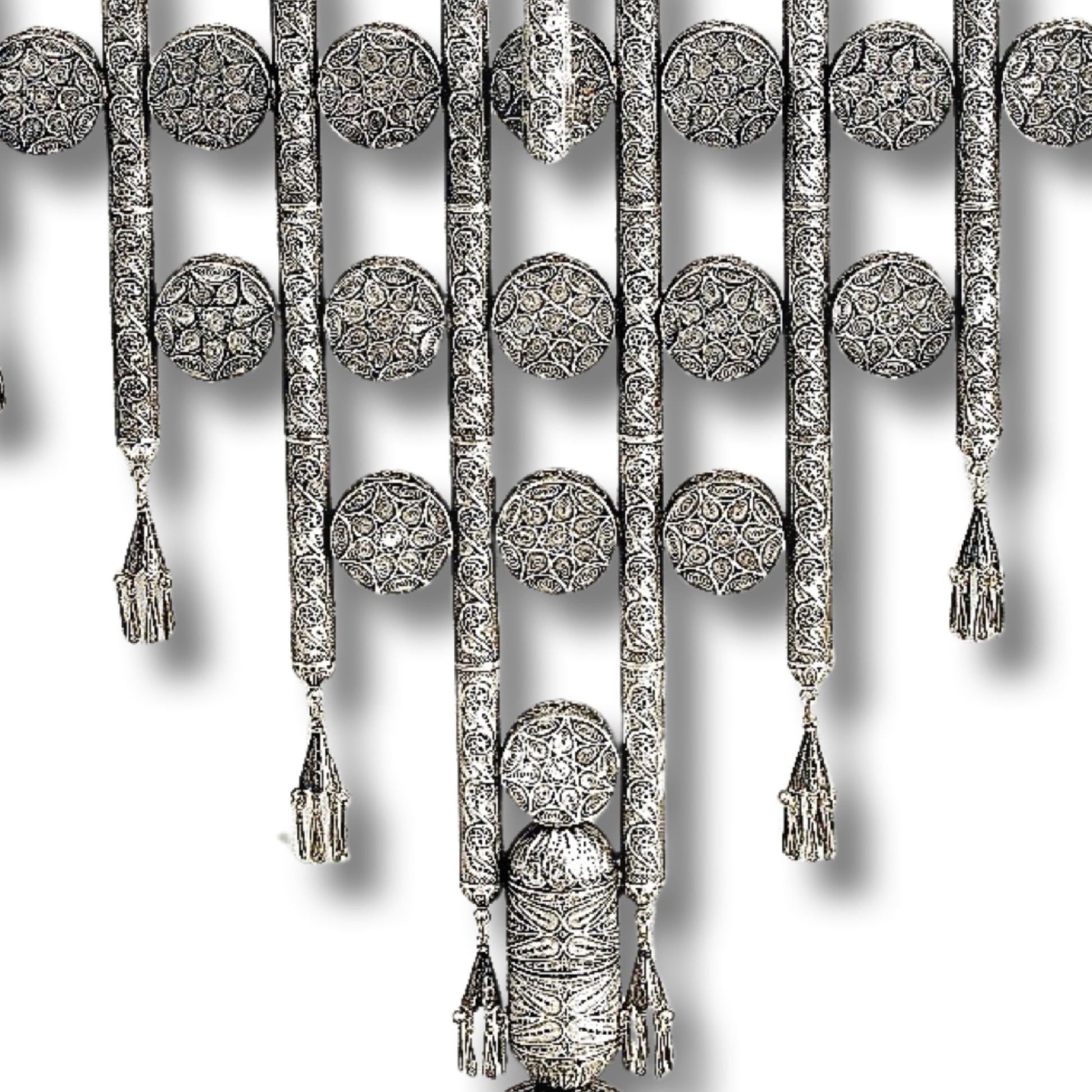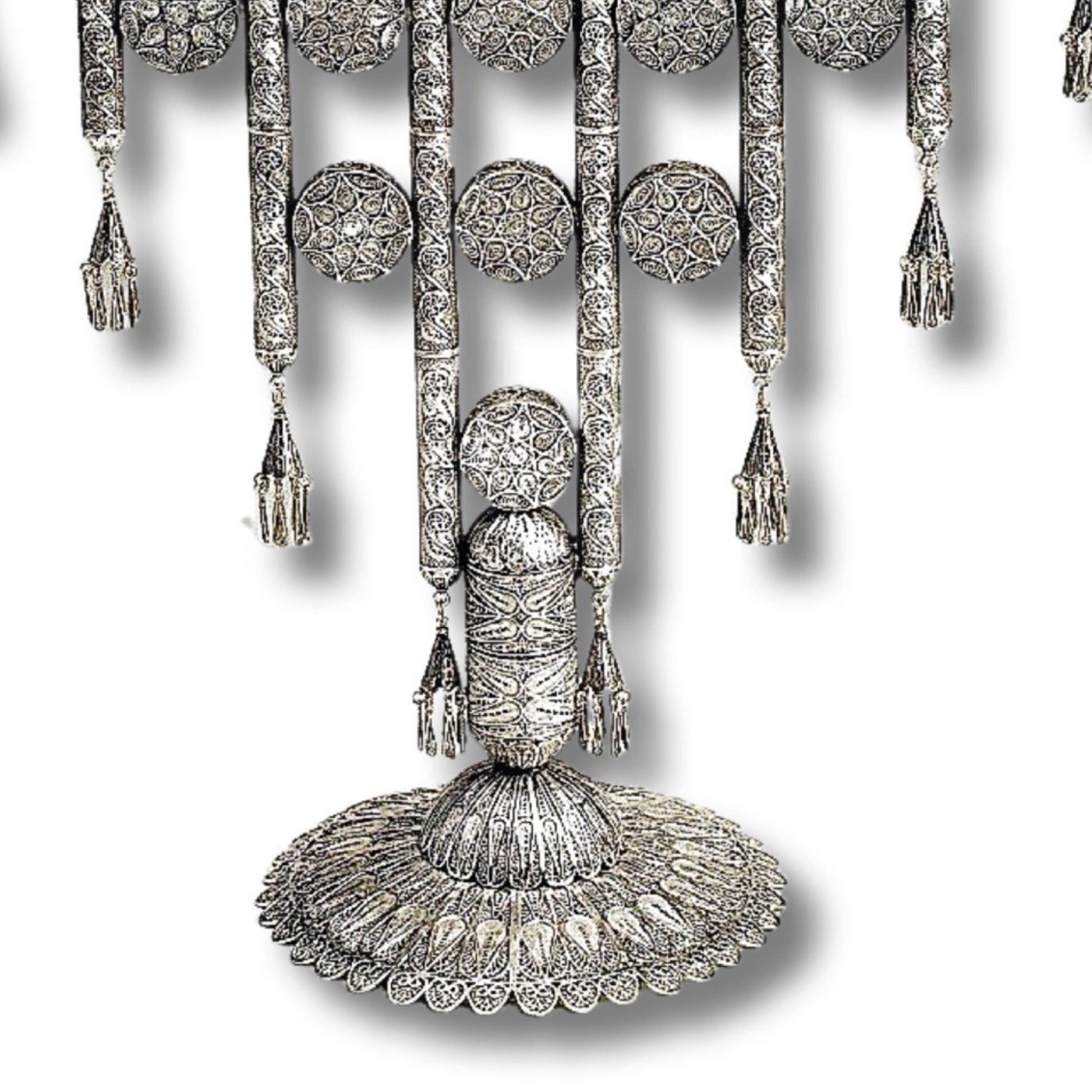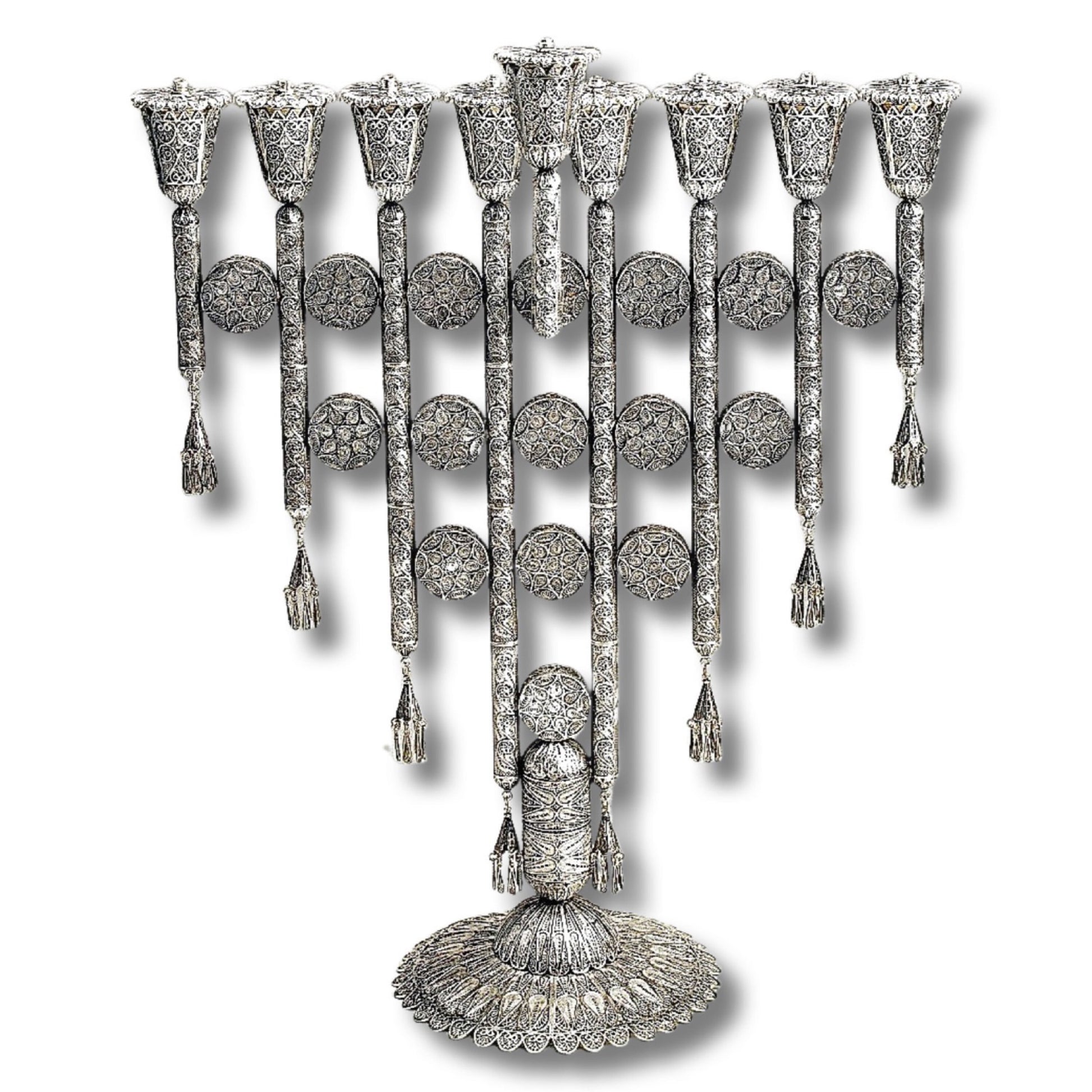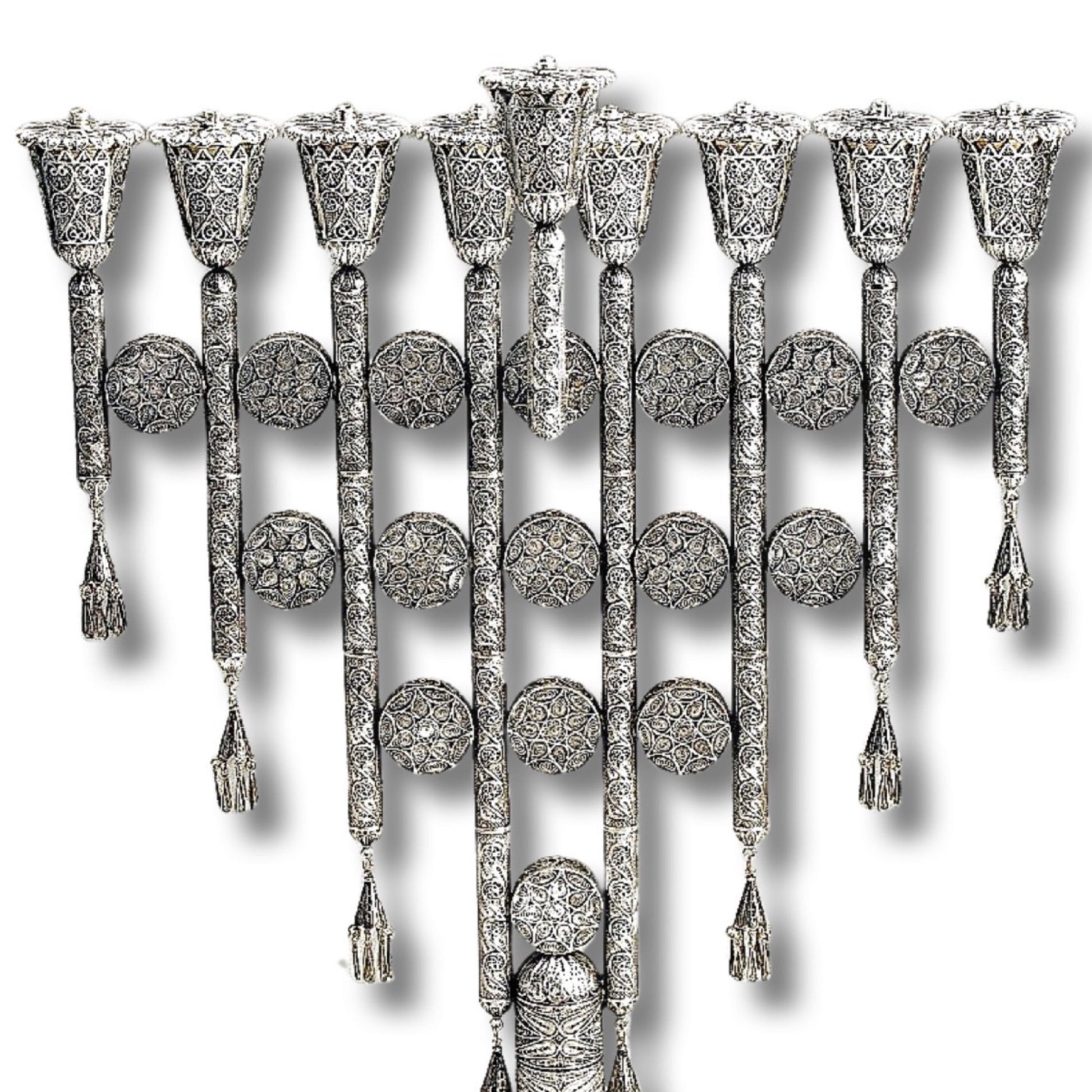 Add a touch of tradition and elegance to your Hanukkah celebrations with this magnificent Yemenite Filigree Hanukkah Menorah, expertly handcrafted to perfection.