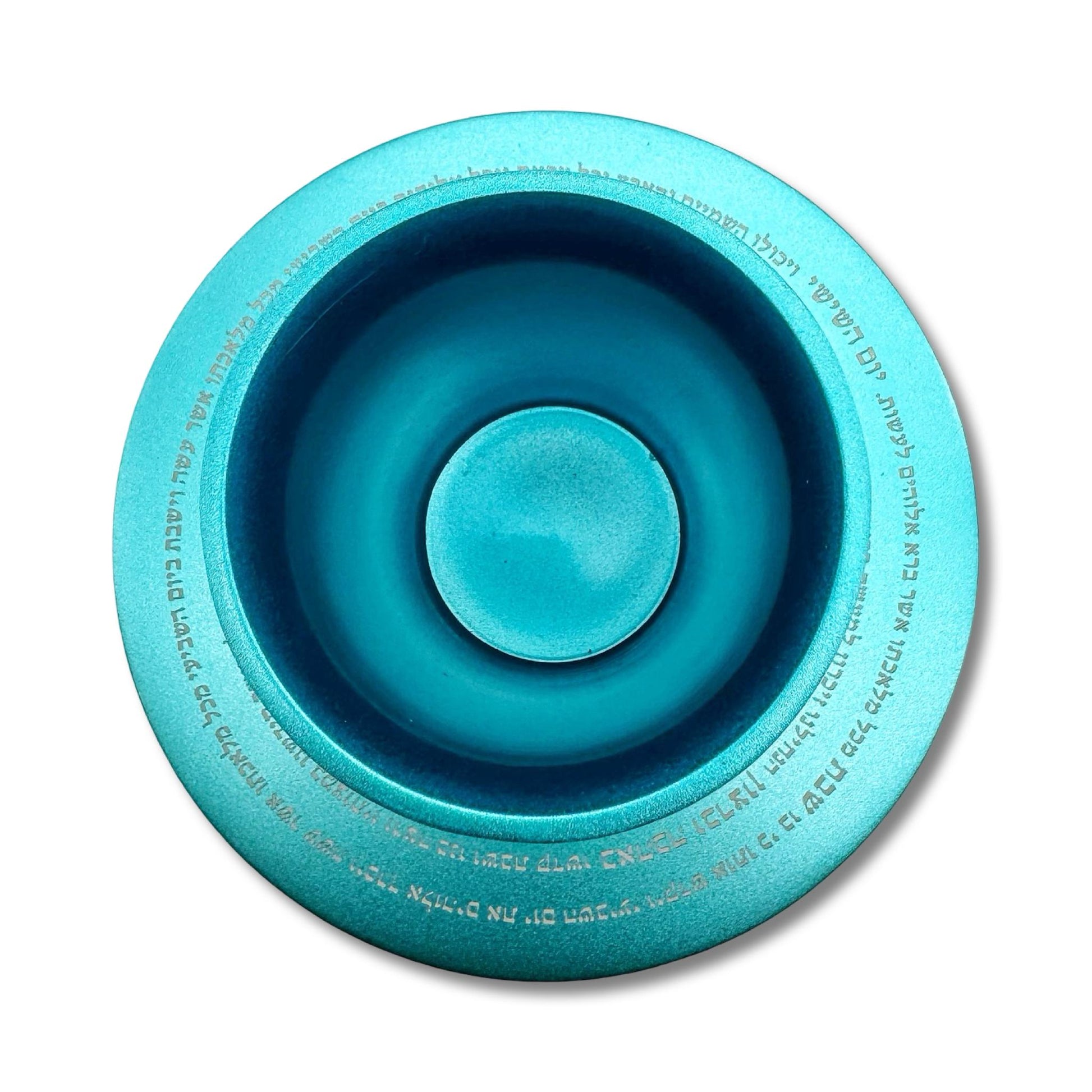 This Kiddush cup is made of Aluminum and has the blessing of Shabbat the creator of vines in Hebrew caption on the cup and the coaster.