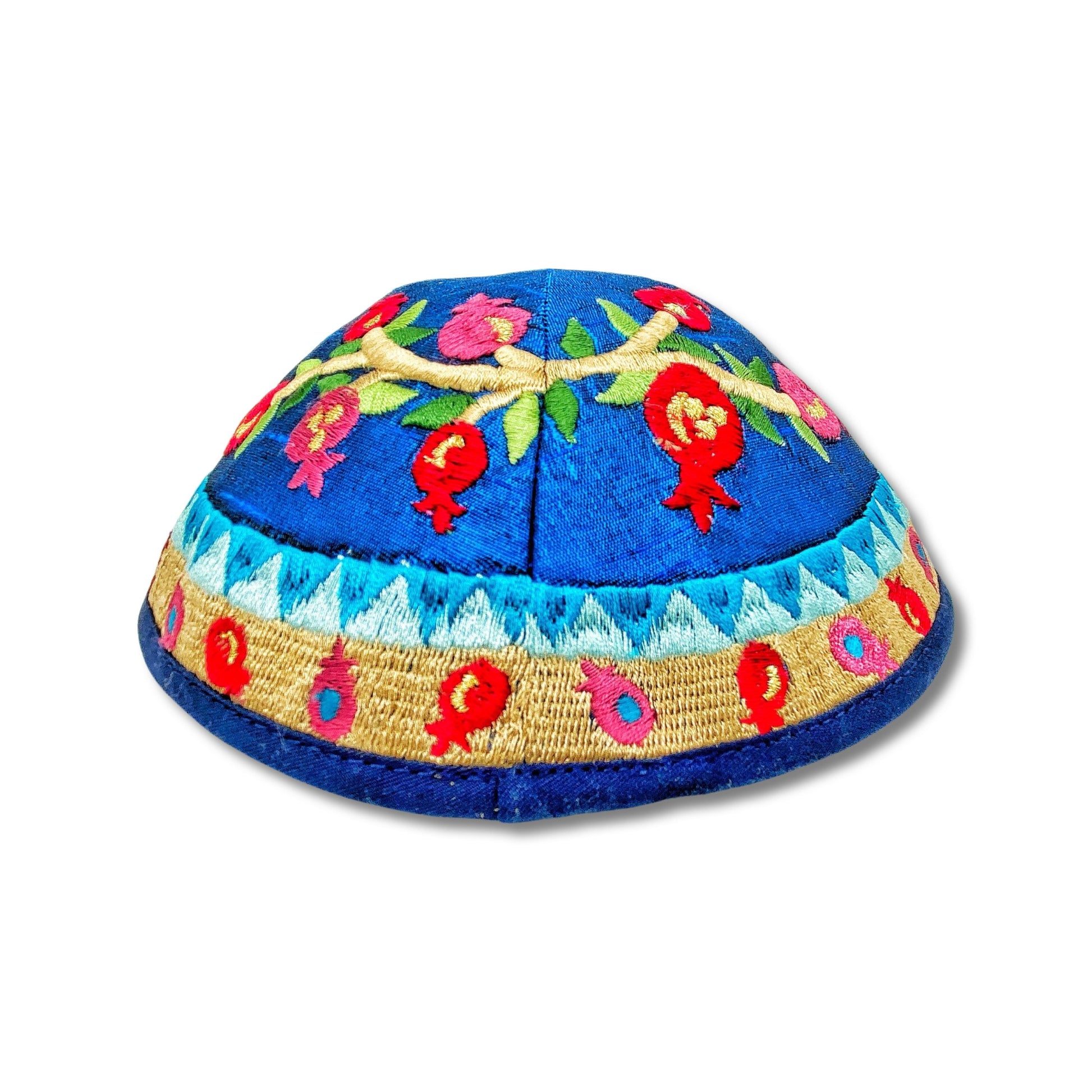 Elevate your spiritual journey with our Colourful Pomegranate Embroidered Kippah, meticulously crafted from the finest fabrics to ensure exceptional quality.