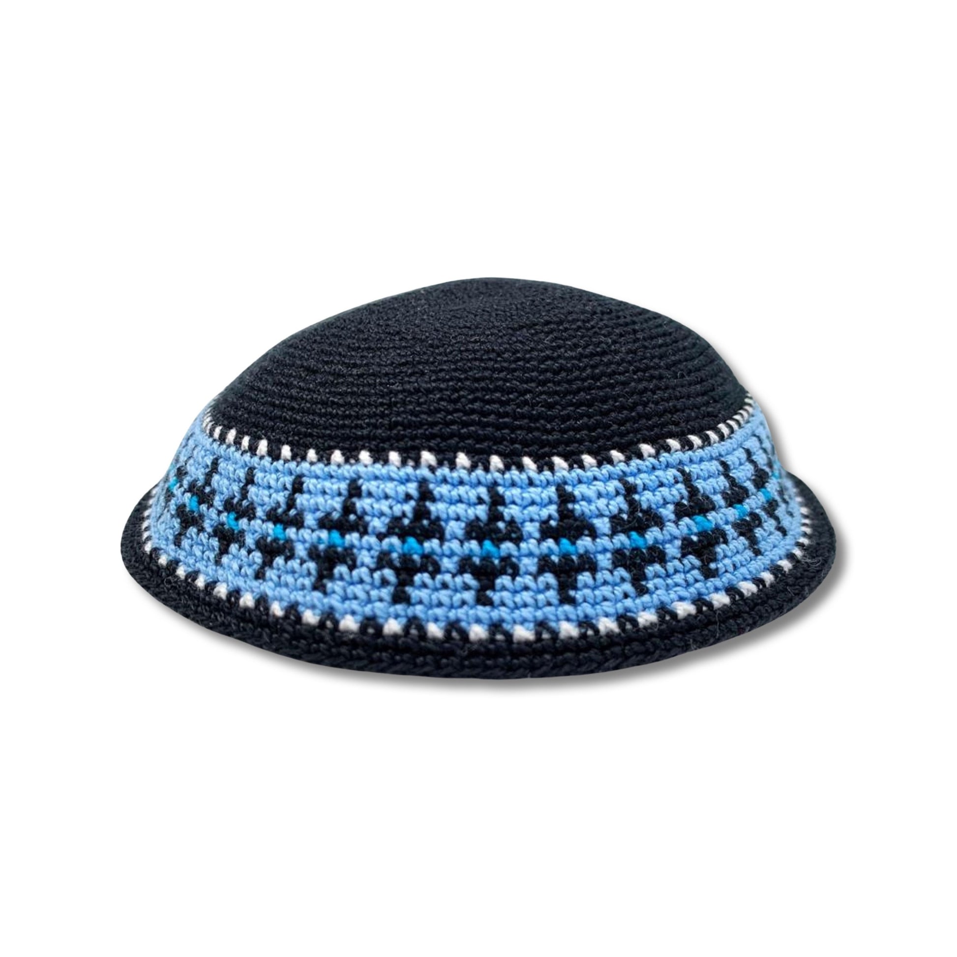 Black Cotton knitted Hand Made kippah design great jewish gift idea.