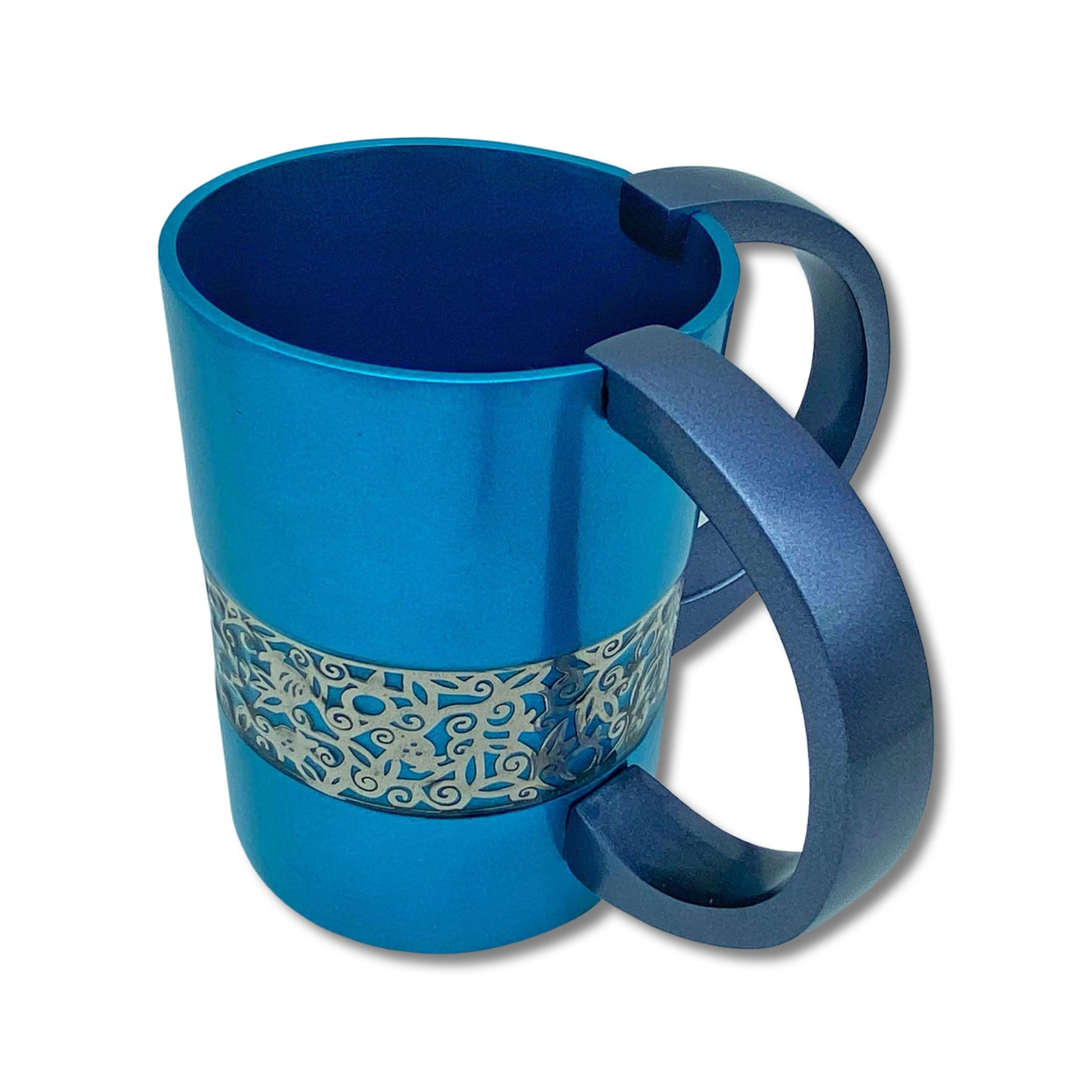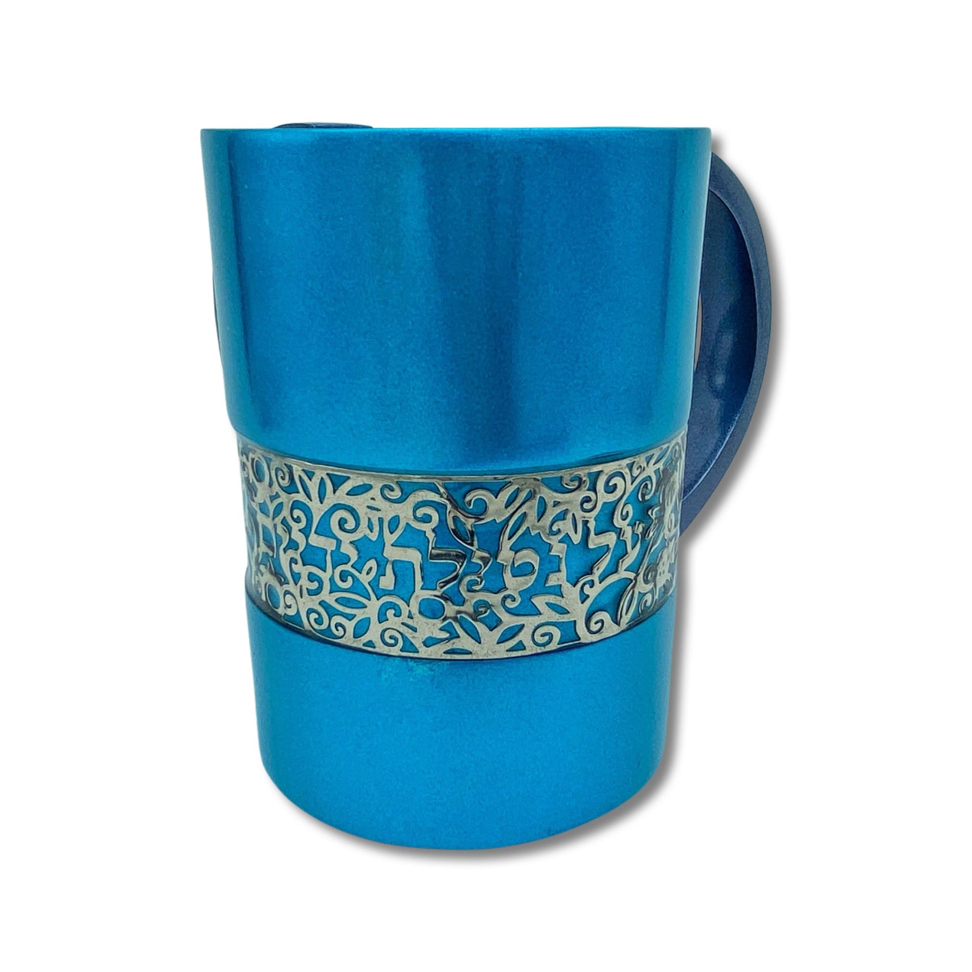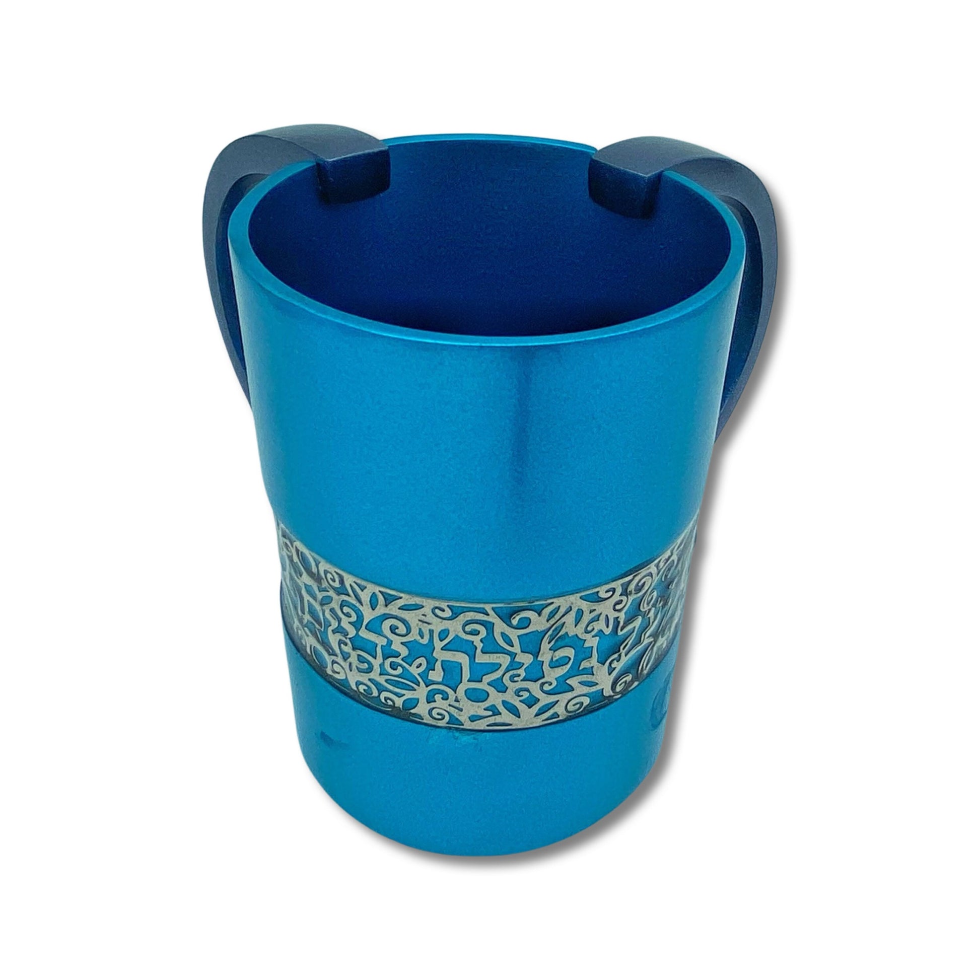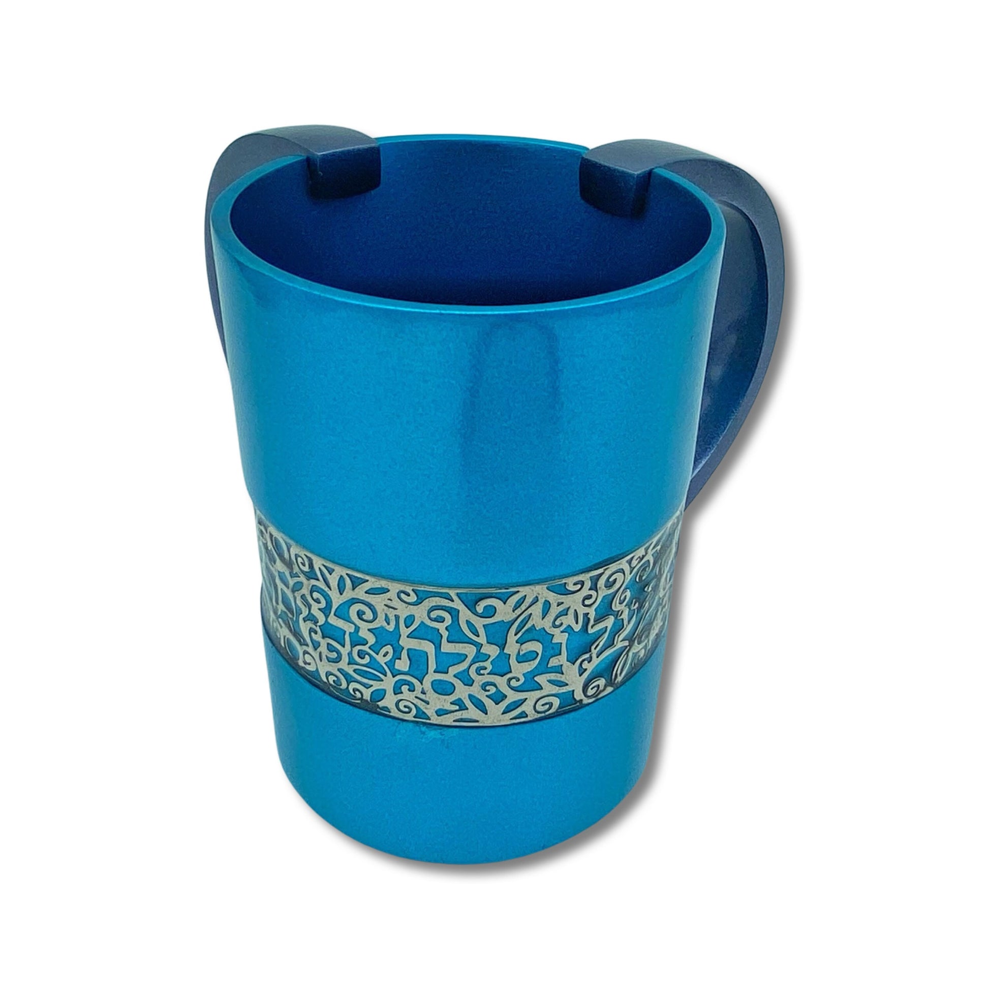 The natla has a metal cutout of the blessing of Netilat yadayim in Hebrew.