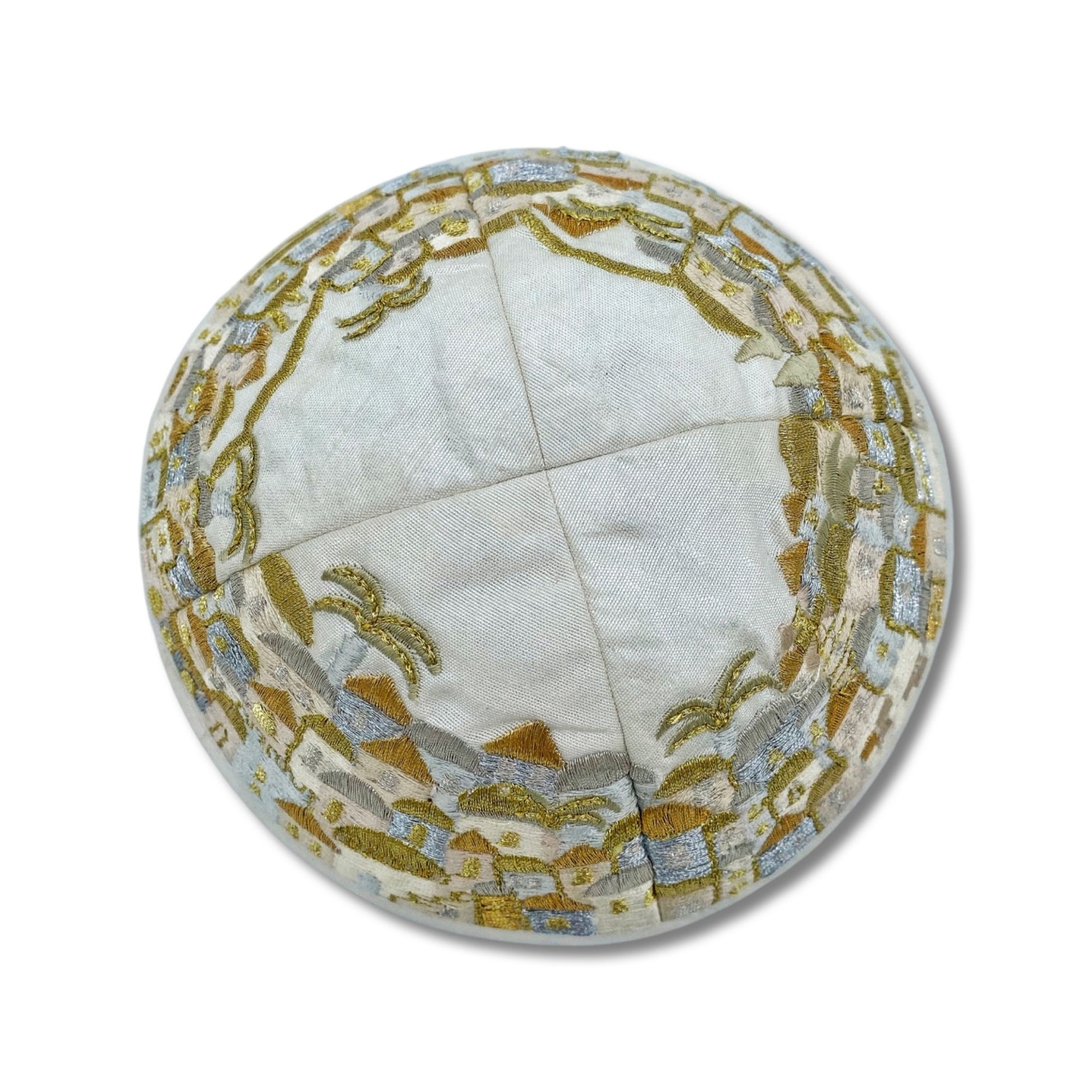 Gold & White Jerusalem Embroidered Kippah Jewish yarmulke