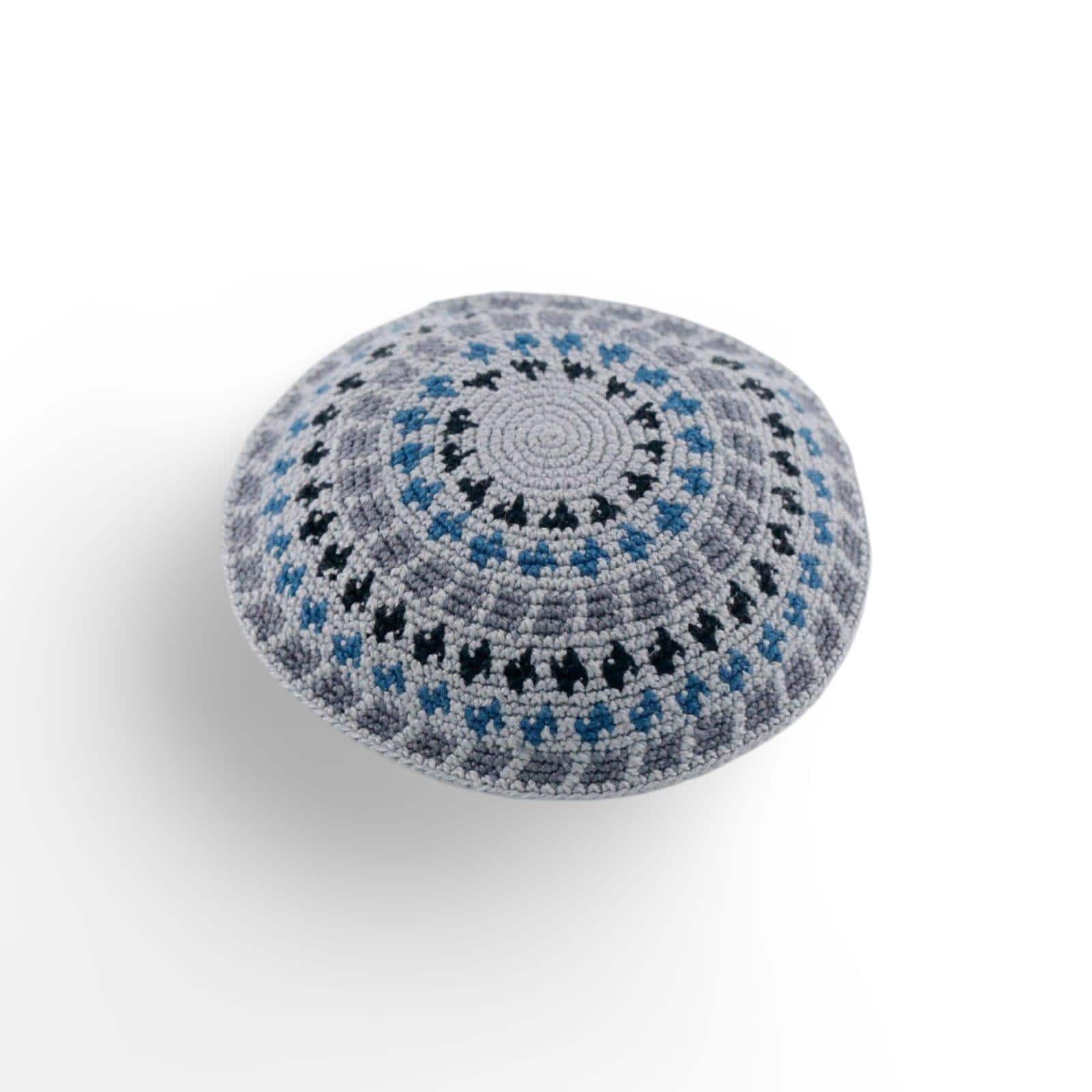 Gray blue & black Cotton knitted Hand Made kippah design great jewish gift idea.