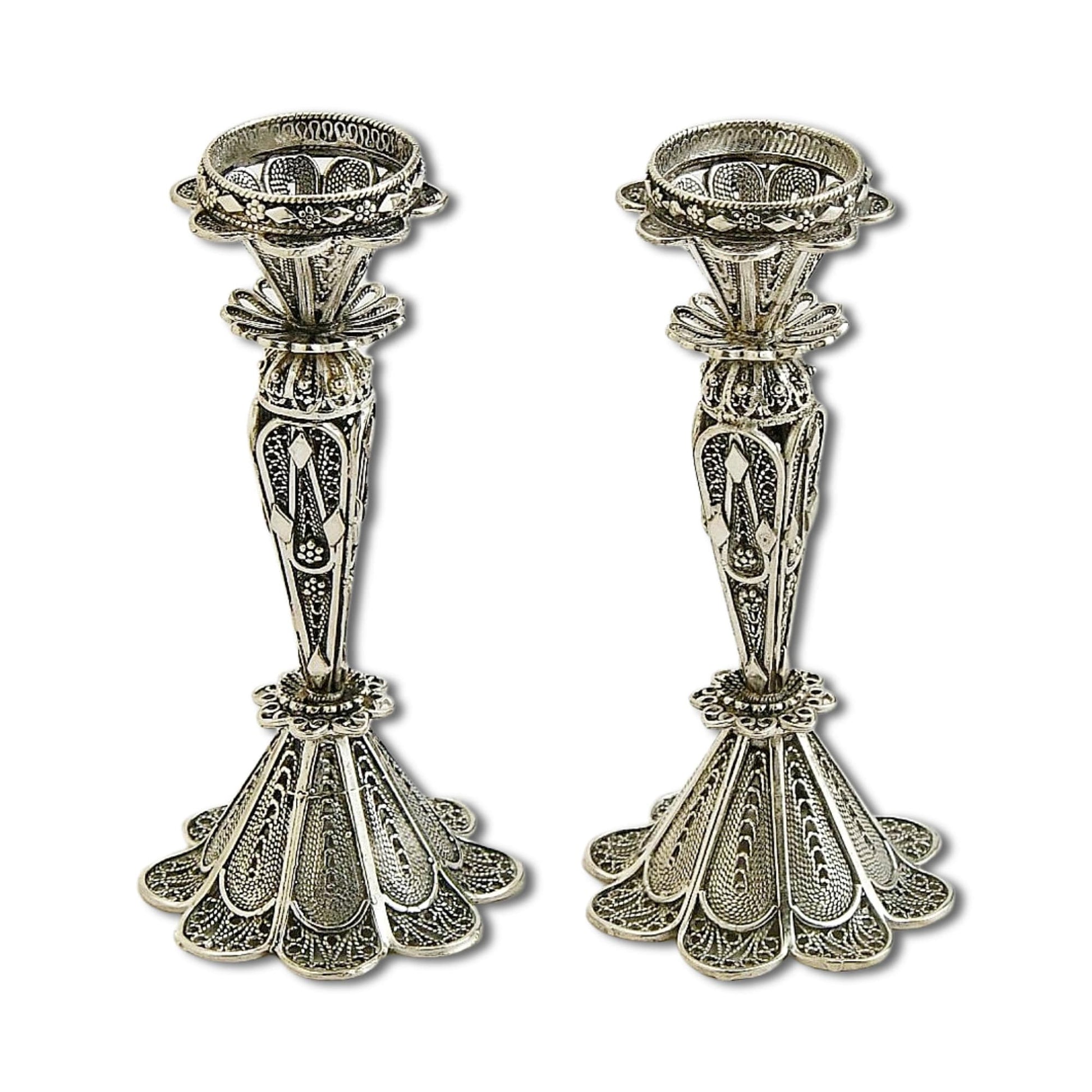 Bring a touch of tradition and elegance to your home with these sterling silver candle holders, lovingly handcrafted using the time-honored techniques of Yemenite filigree art.