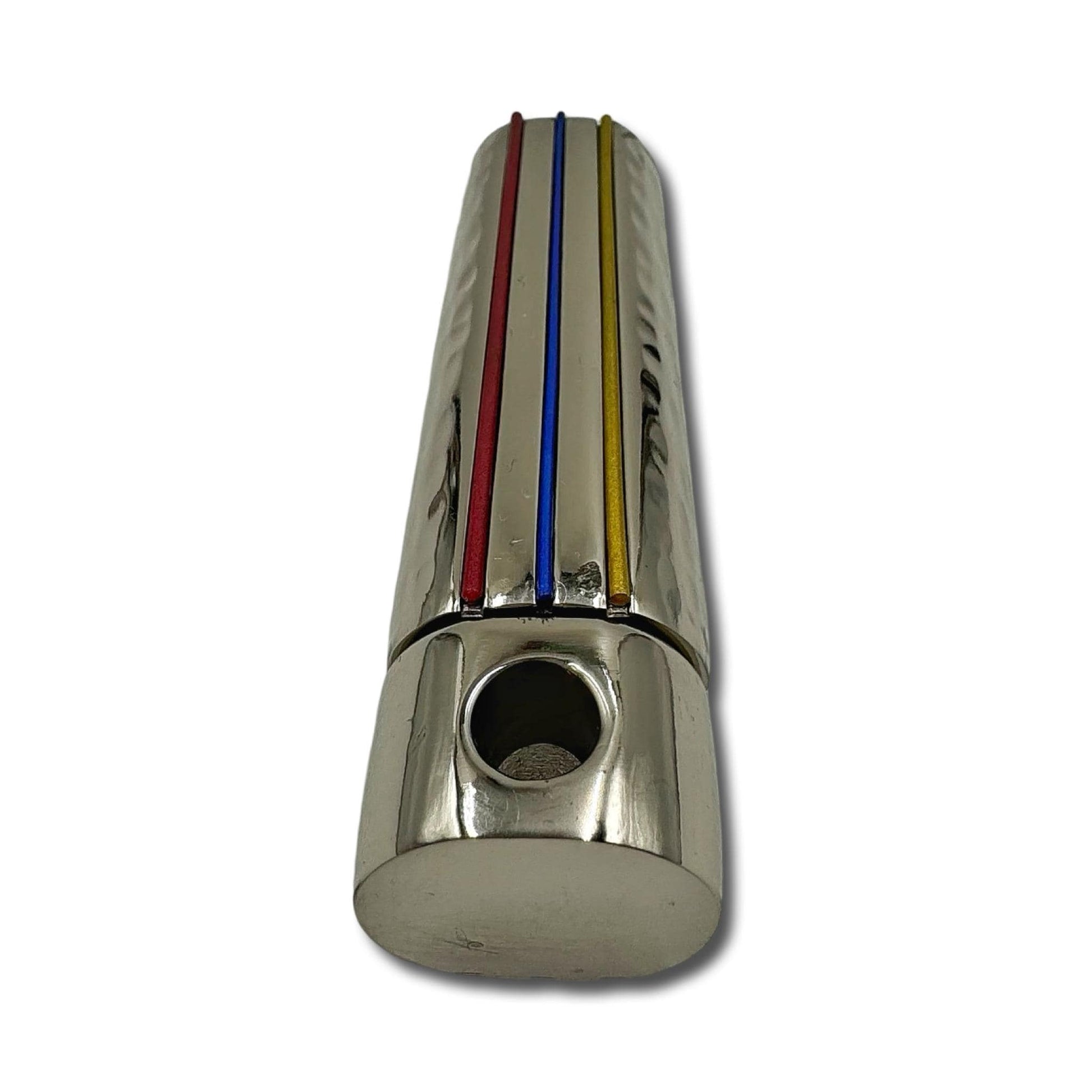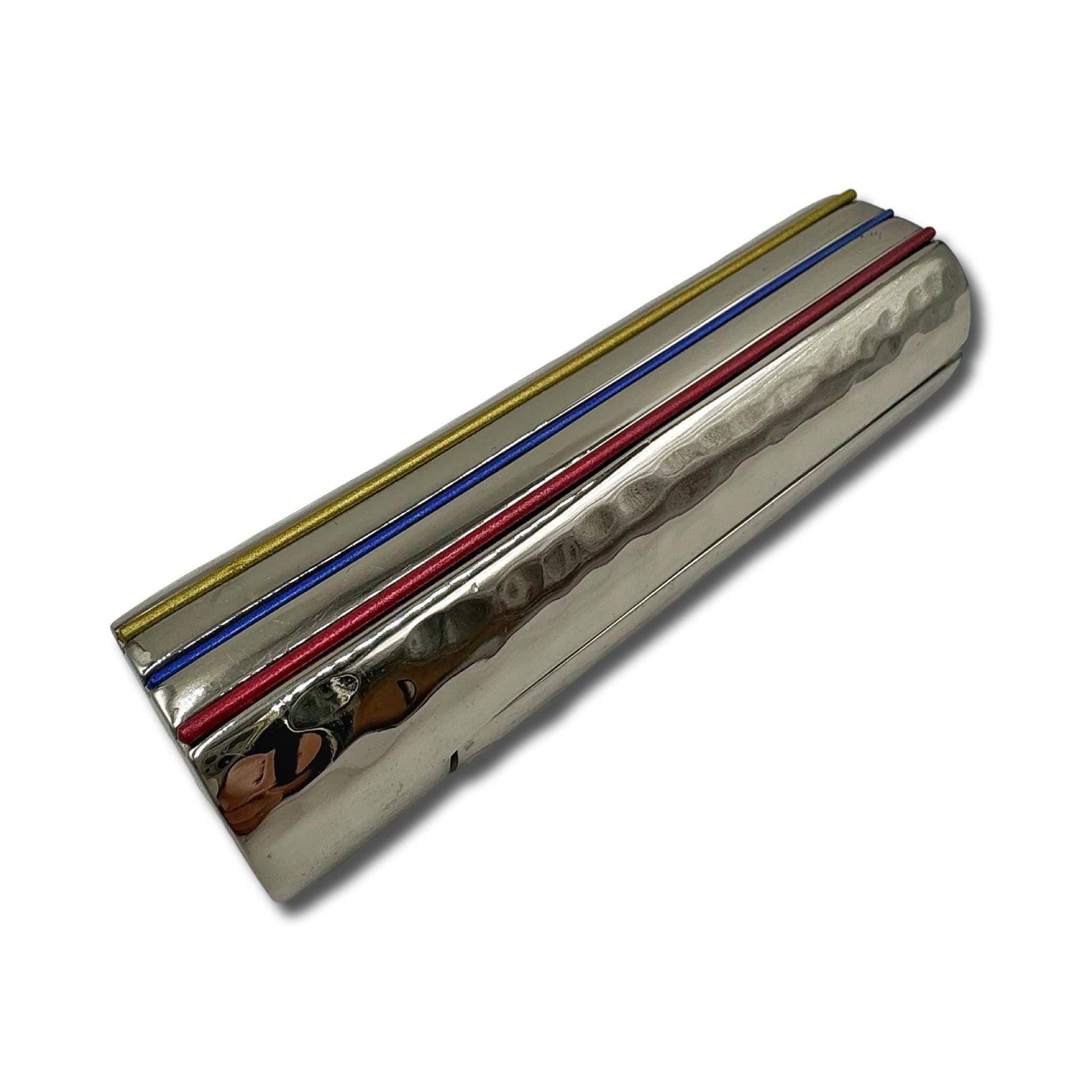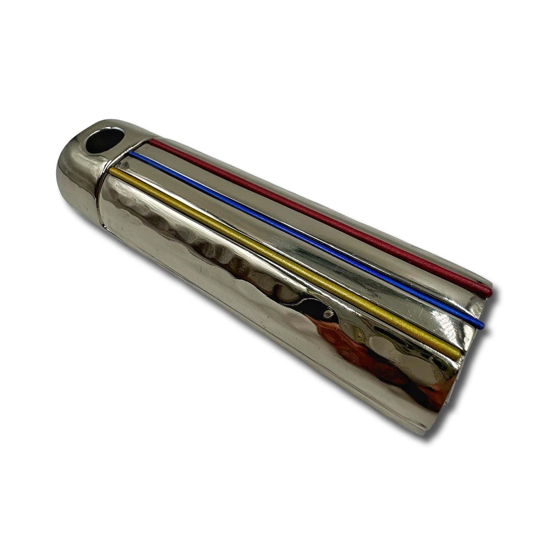 Compact & Colorful Travel Menorah – Nickel-Plated Aluminum with Anodized Metal Stripes