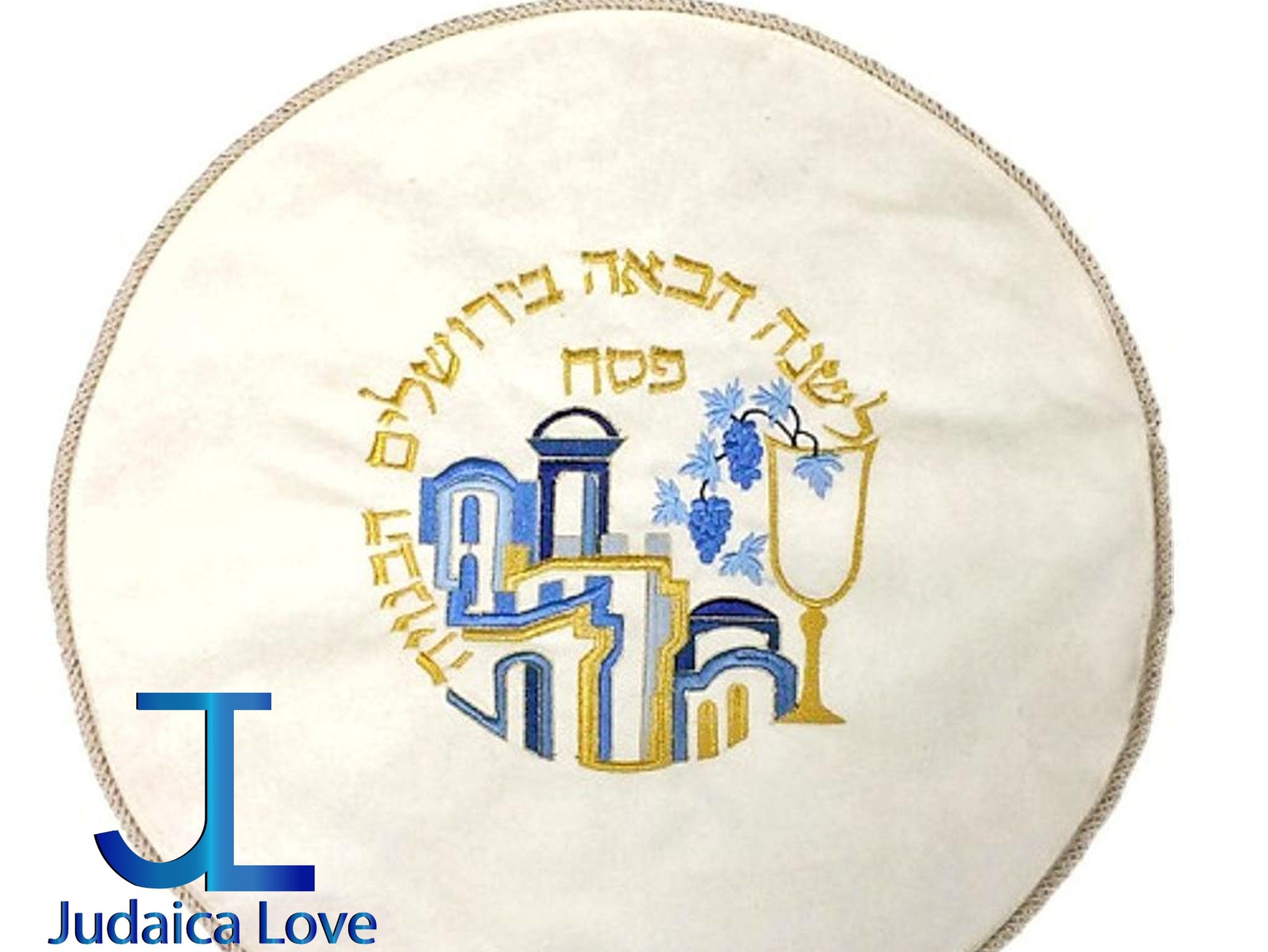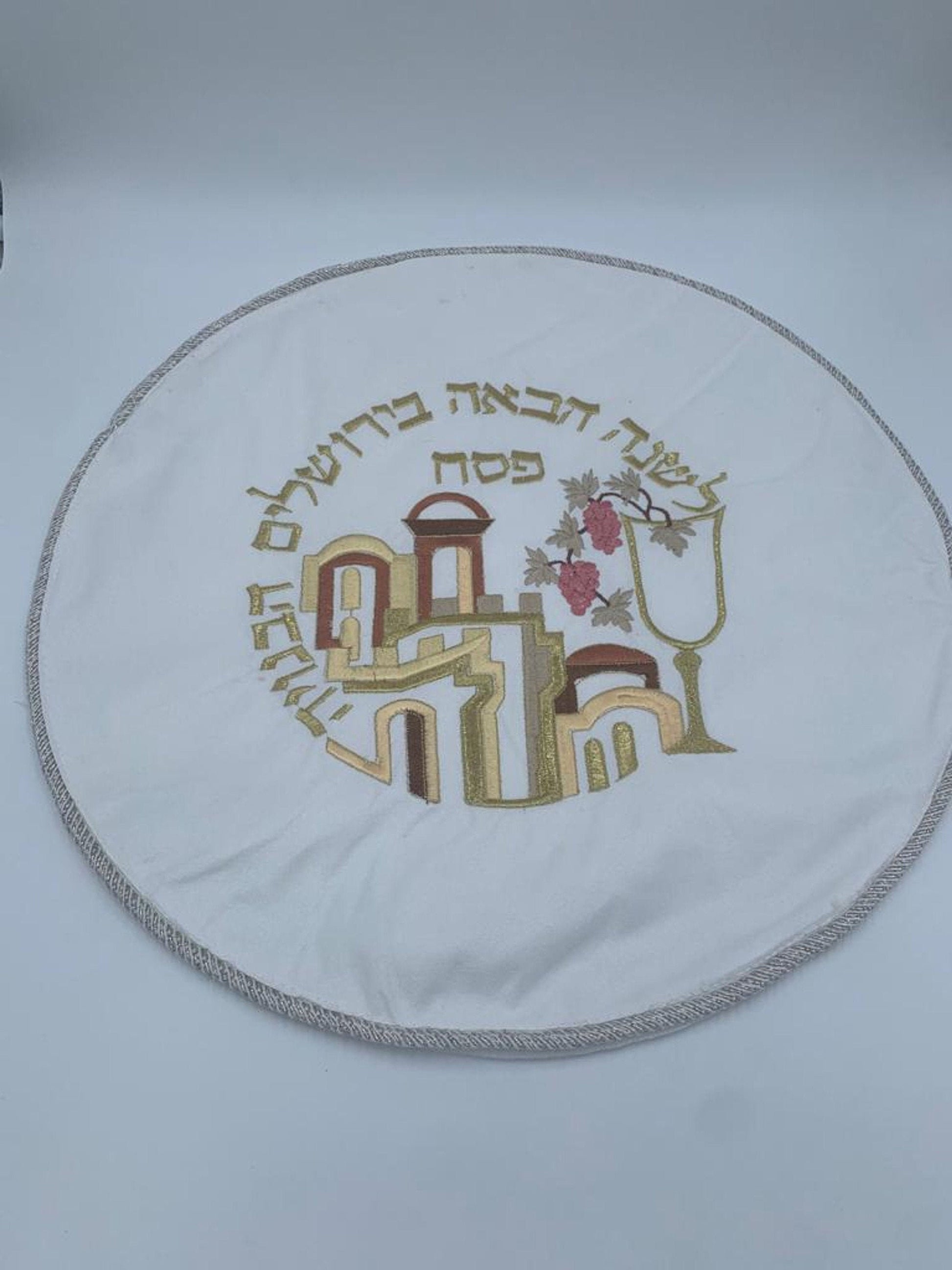 Elevate Your Passover Celebration with our Exquisite Matzah Cover Featuring a Magnificent Golden Jerusalem Design!
