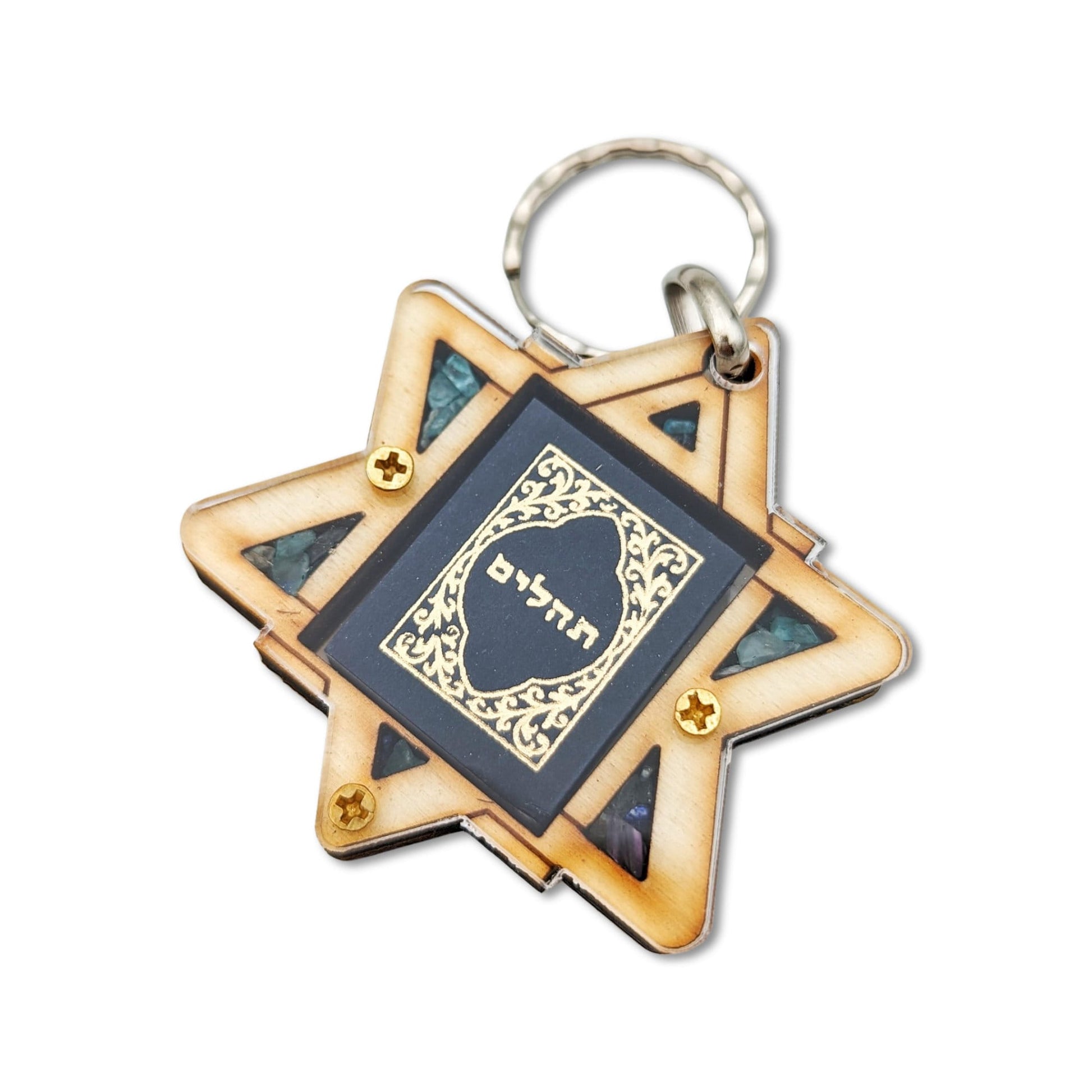 Star of David Wood and Gemstones Keychain
