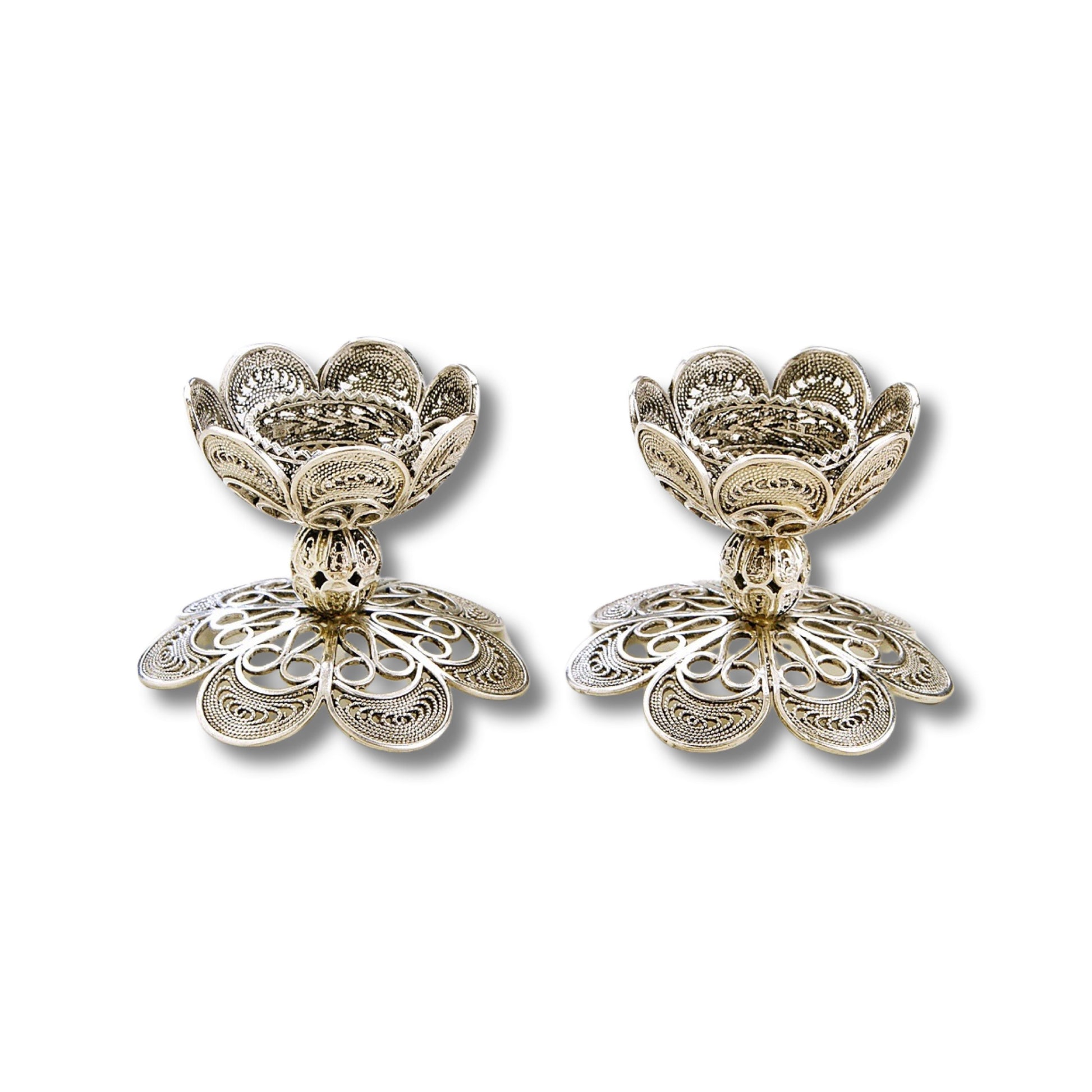 Sterling Silver Yemenite Filigree Shabbat Candle Holders