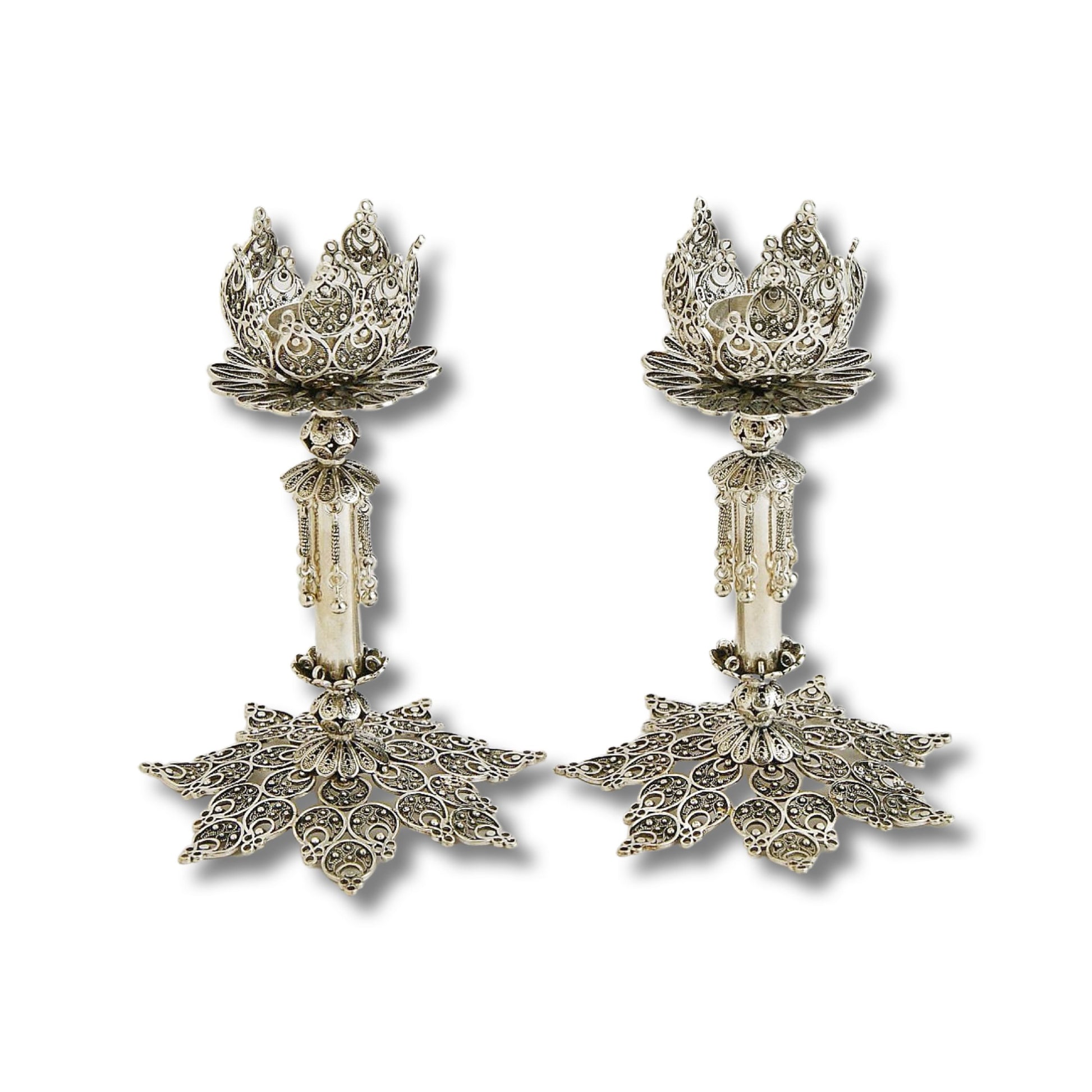 Discover Timeless Elegance with Sterling Silver Yemenite Filigree Art Candle Holders