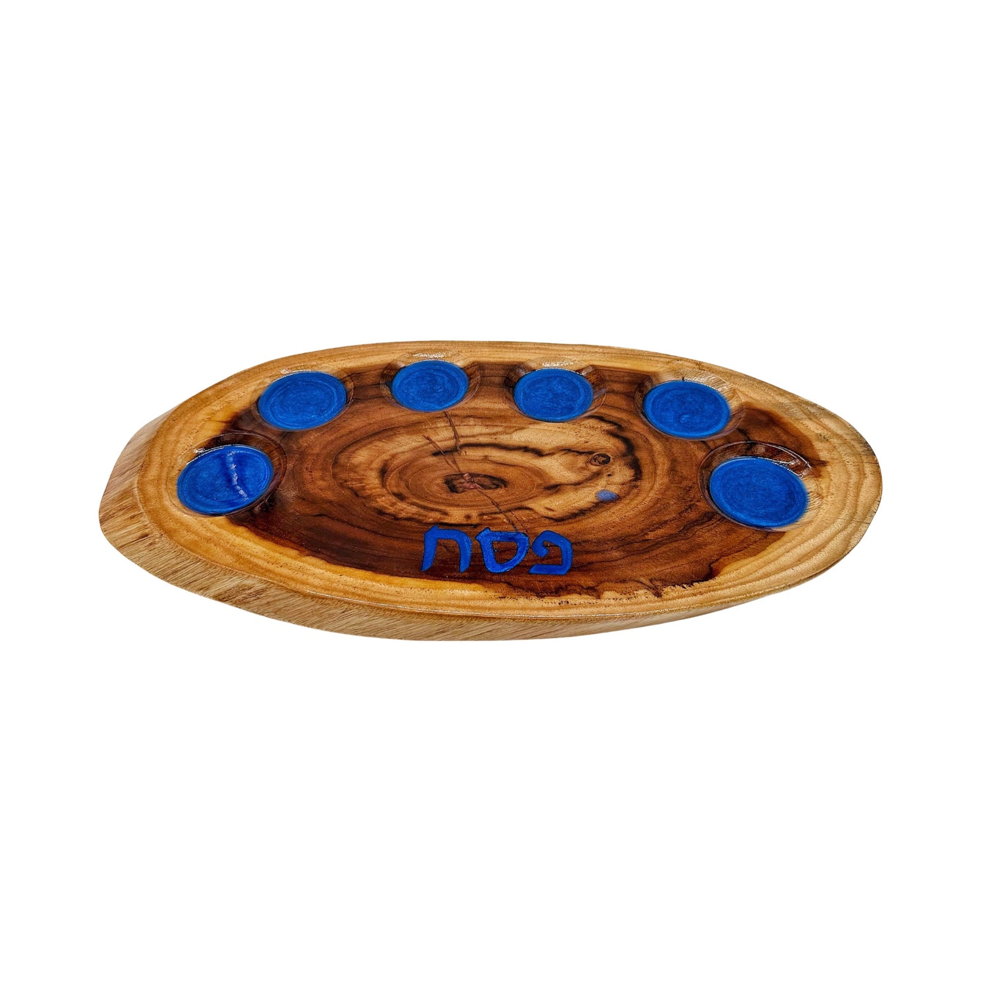 handmade Passover plate, crafted with precision and care from Teak wood and epoxy resin. This stunning piece seamlessly blends traditional craftsmanship with modern elegance, making it a centerpiece for your Passover Seder table. Each plate is meticulously handcrafted, ensuring a unique and one-of-a-kind design that reflects the beauty of the holiday. Elevate your Passover experience with this timeless piece that celebrates both heritage and artistry.