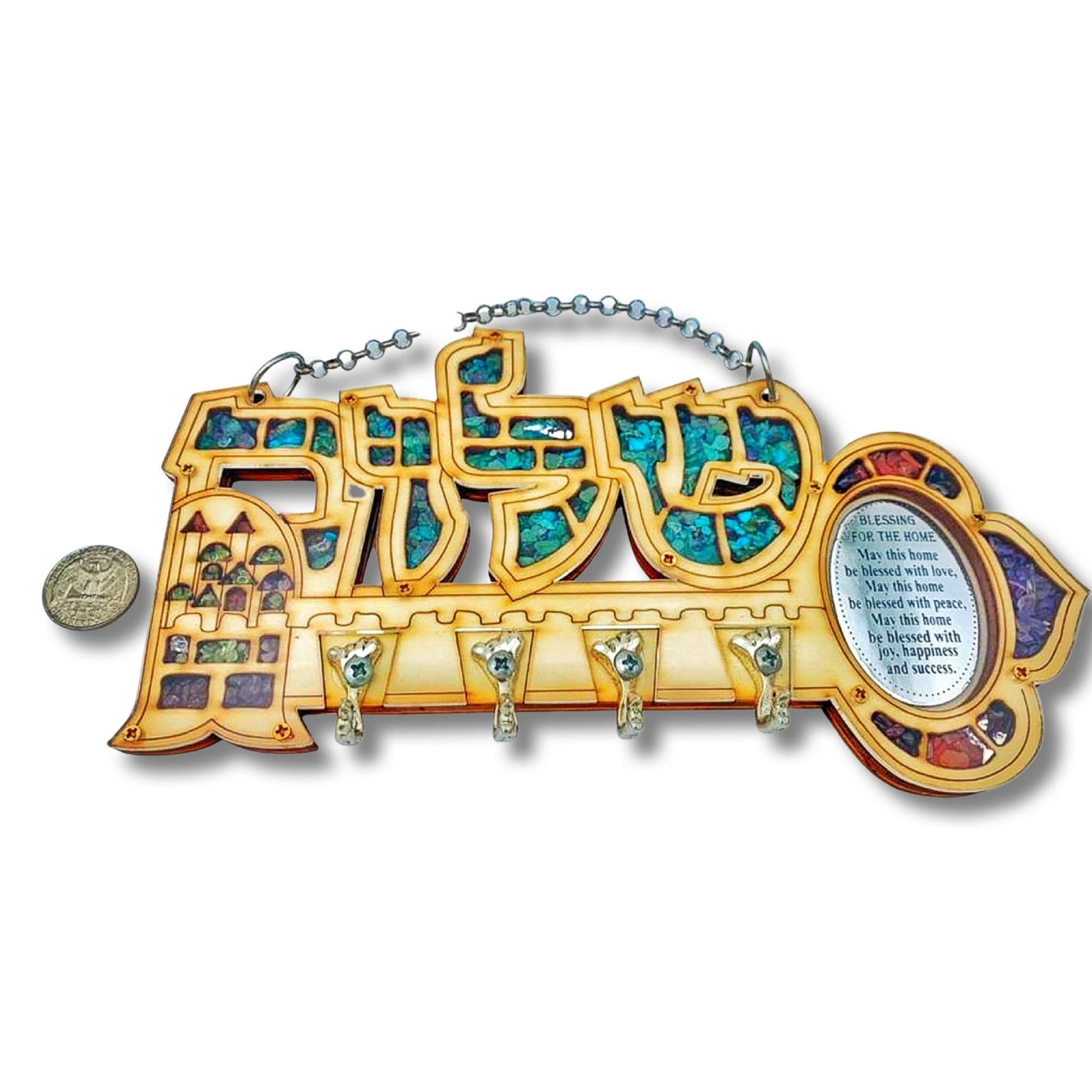 Wood key Hanger Home Blessing (Shalom/Peace Design)