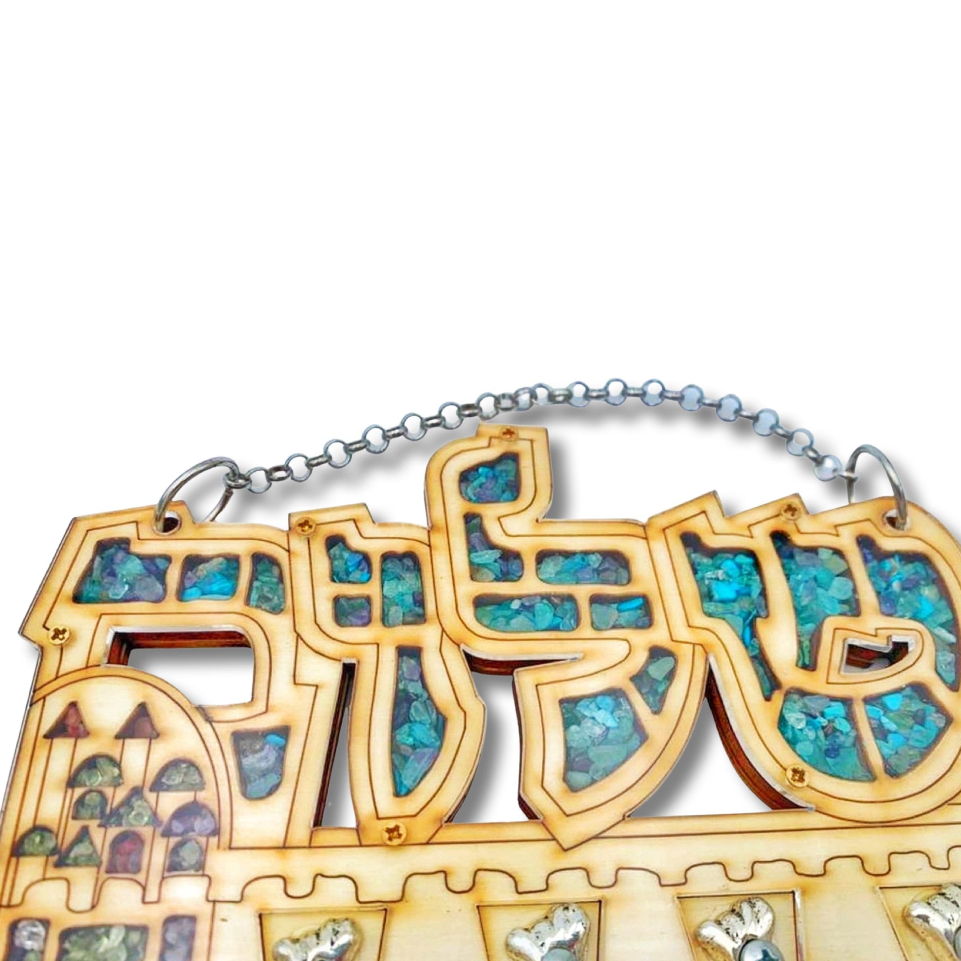 Discover the perfect blend of artistry and tradition with our meticulously crafted Wood Shalom Wall Blessing Key Hanger, hand-adjusted and cut in a small workshop in Israel. Made from poplar tree wood and adorned with an array of exquisite gemstones, including Amethyst, Carnelian, Citrine, Onyx, Garnet, Quartz, and Rose Quartz, this piece is as unique as it is beautiful. Closed with Lucite glass, it encapsulates the essence of peace and spirituality.